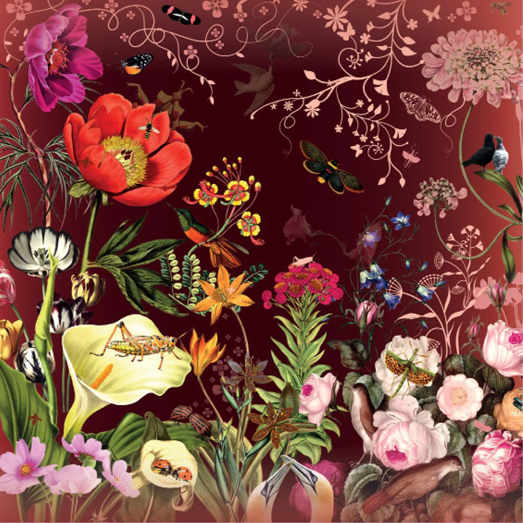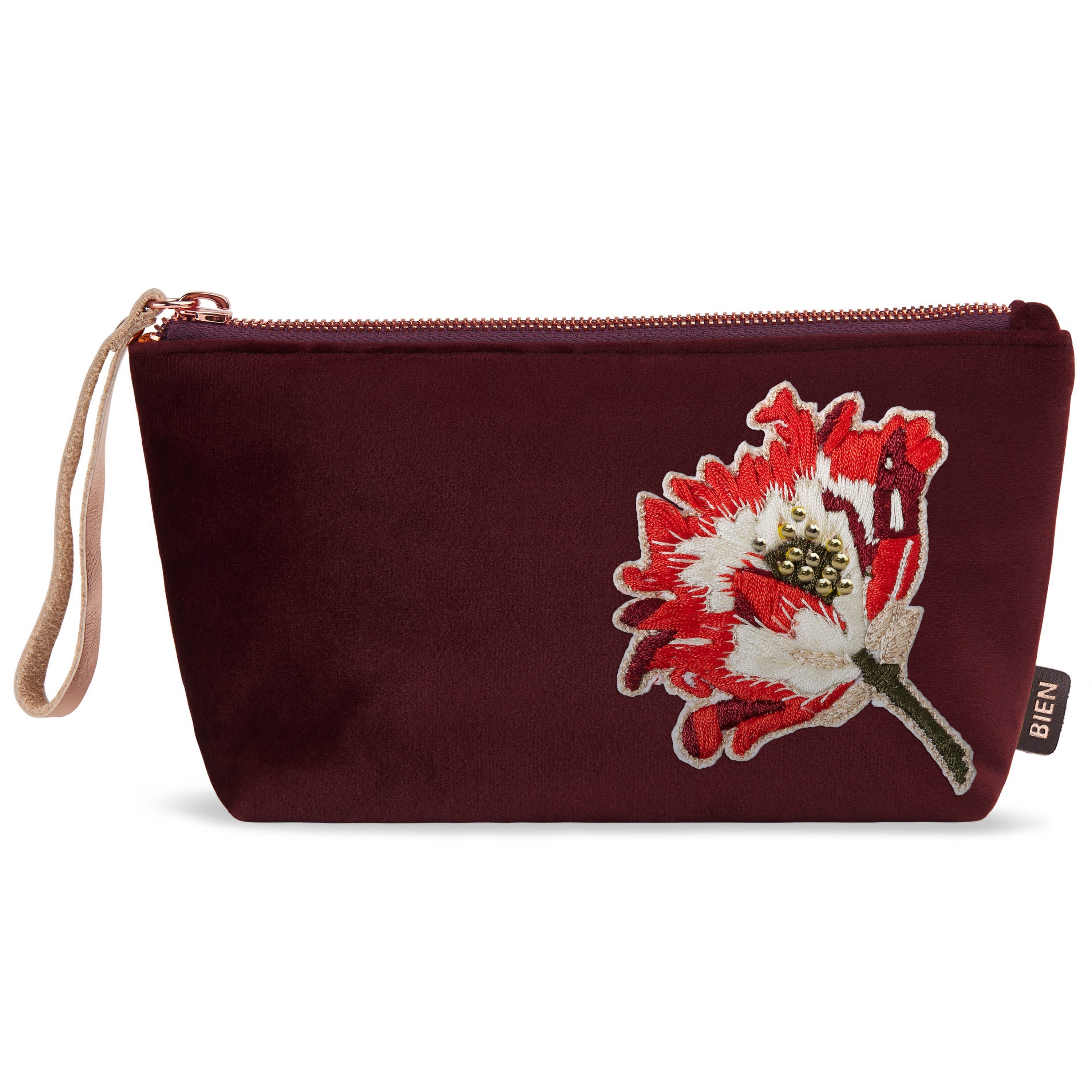 Large Pouch in Burgundy - Poppy Flower