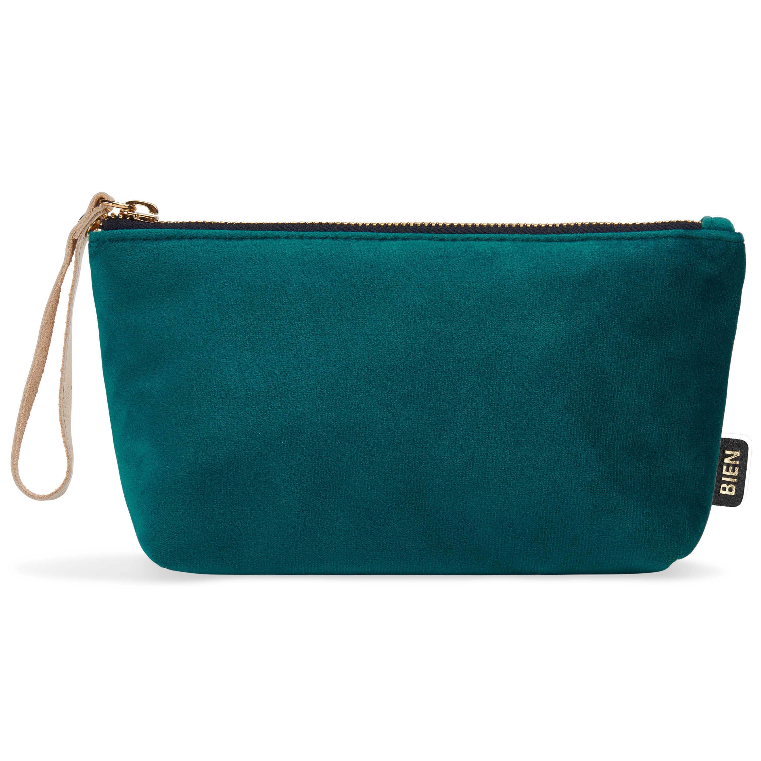 Grote pouch in fluweel/satijn-nylon petrol